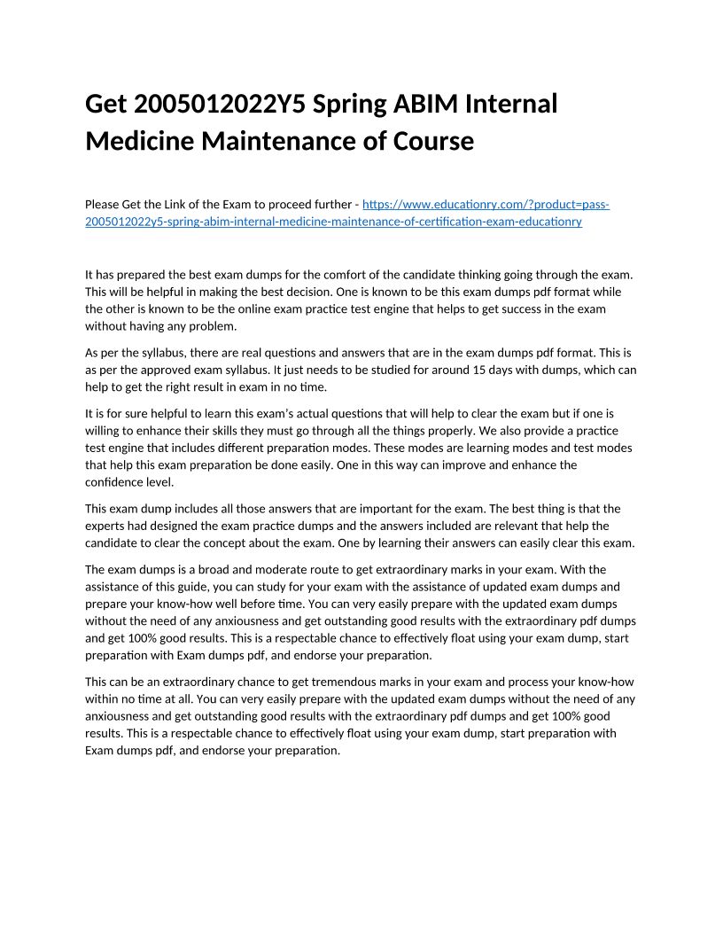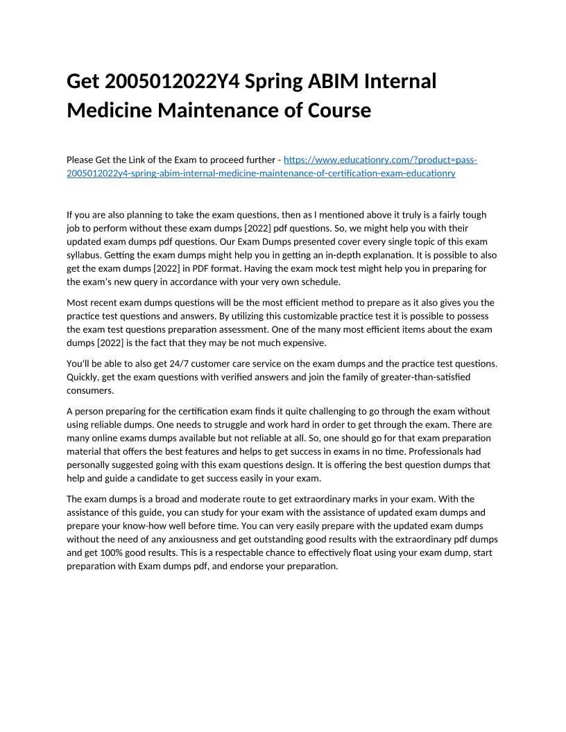 Get 2005012022Y6 Spring ABIM Internal Medicine Maintenance of Course