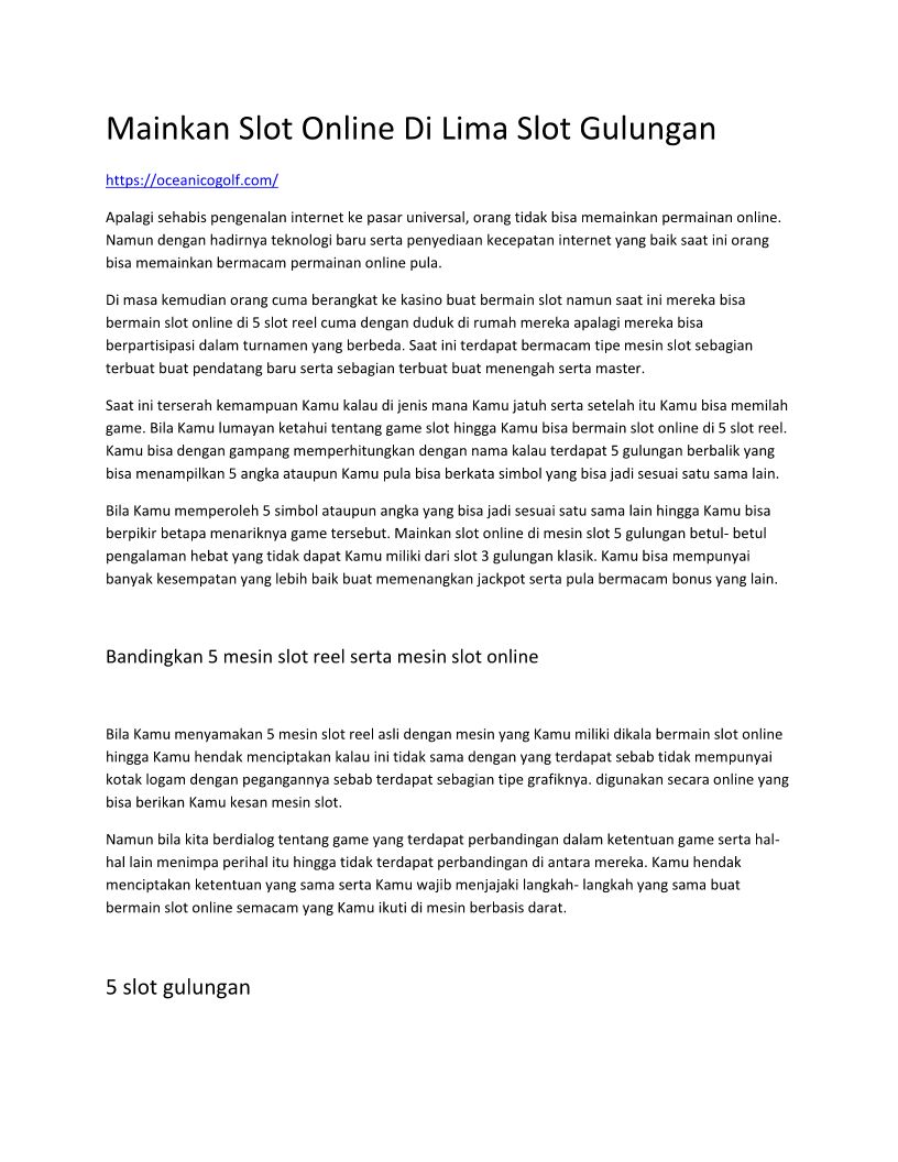 Mainkan Slot Online Di Lima Slot Gulungan