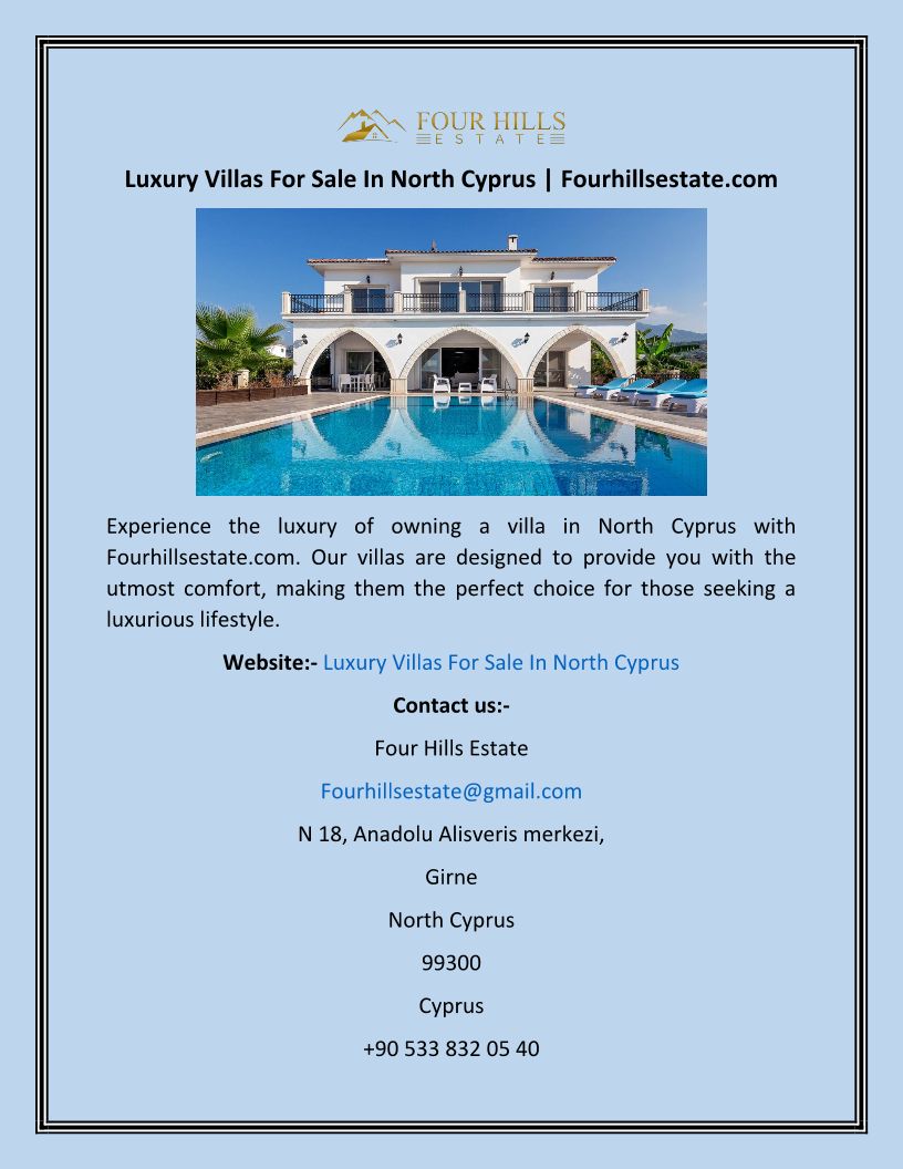 Luxury Villas For Sale In North Cyprus Fourhillsestate