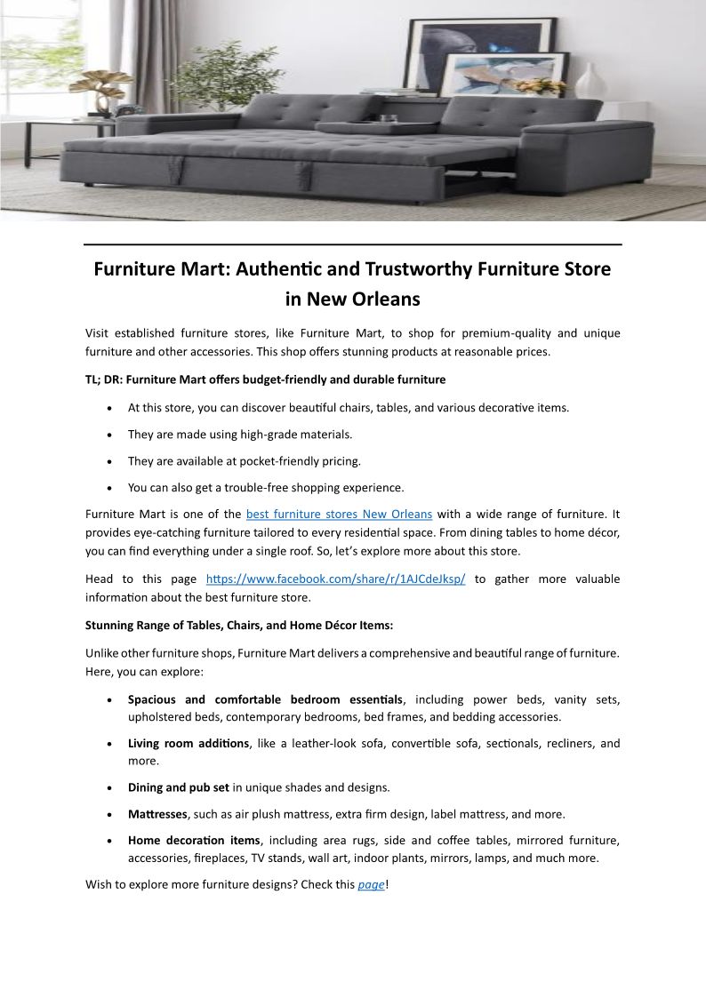 Furniture Mart Authentic and Trustworthy Furniture Store in New Orleans