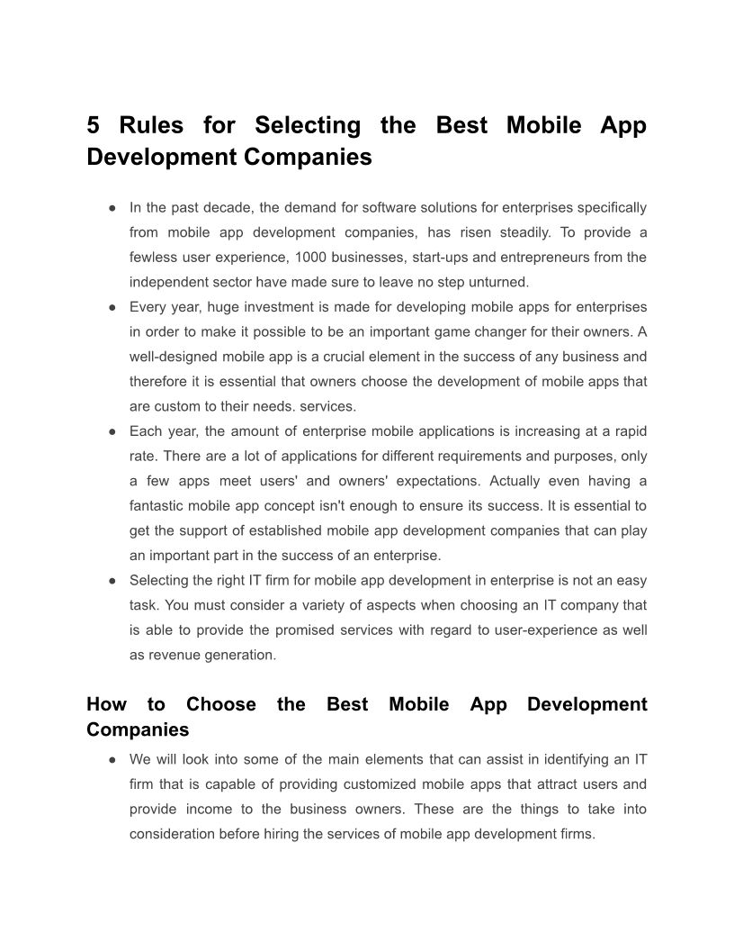 5 Rules for Selecting the Best Mobile App Development Companies