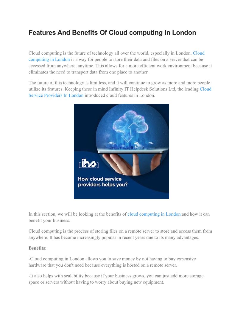 Features And Benefits Of Cloud computing in London