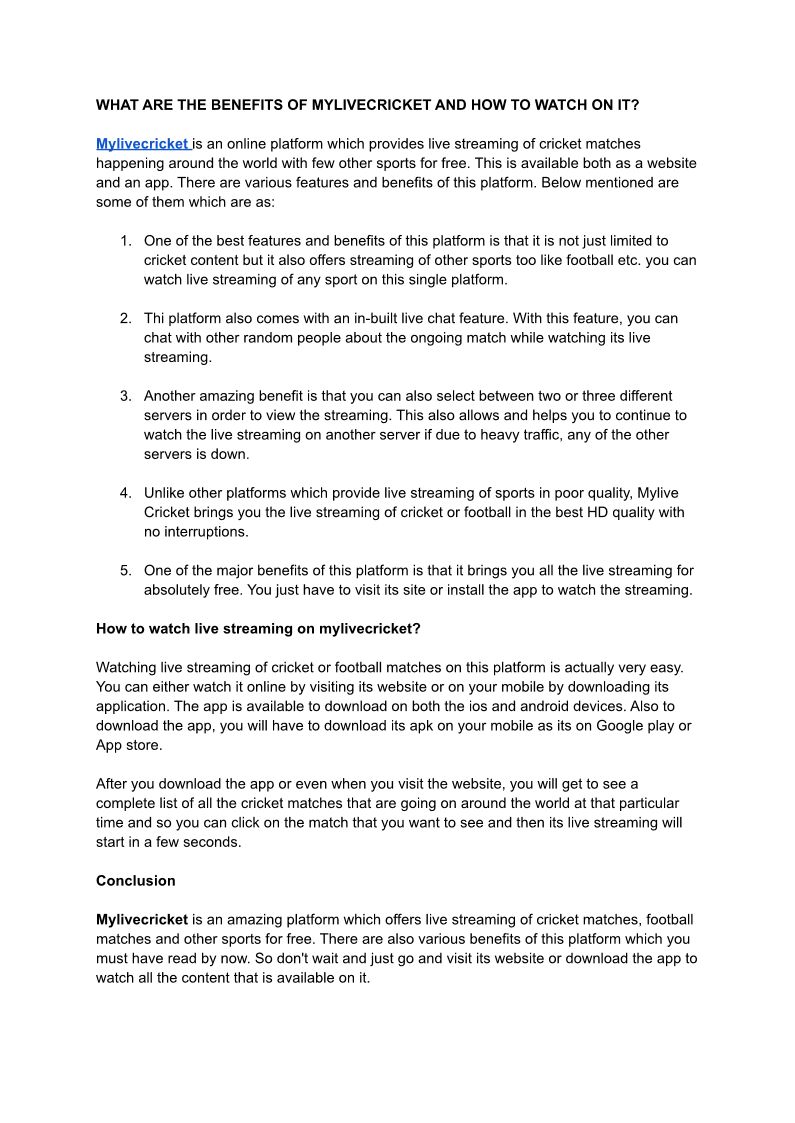 WHAT ARE THE BENEFITS OF MYLIVECRICKET AND HOW TO WATCH ON IT?