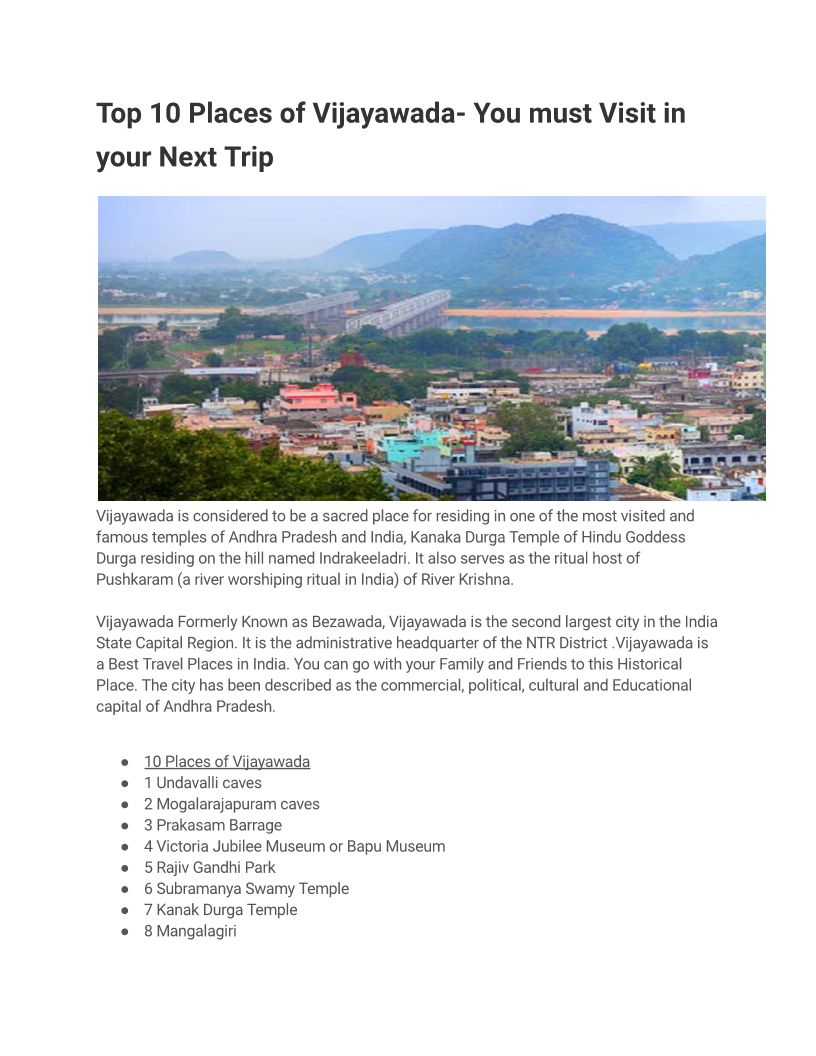 Top 10 Places of Vijayawada- You must Visit in your Next Trip