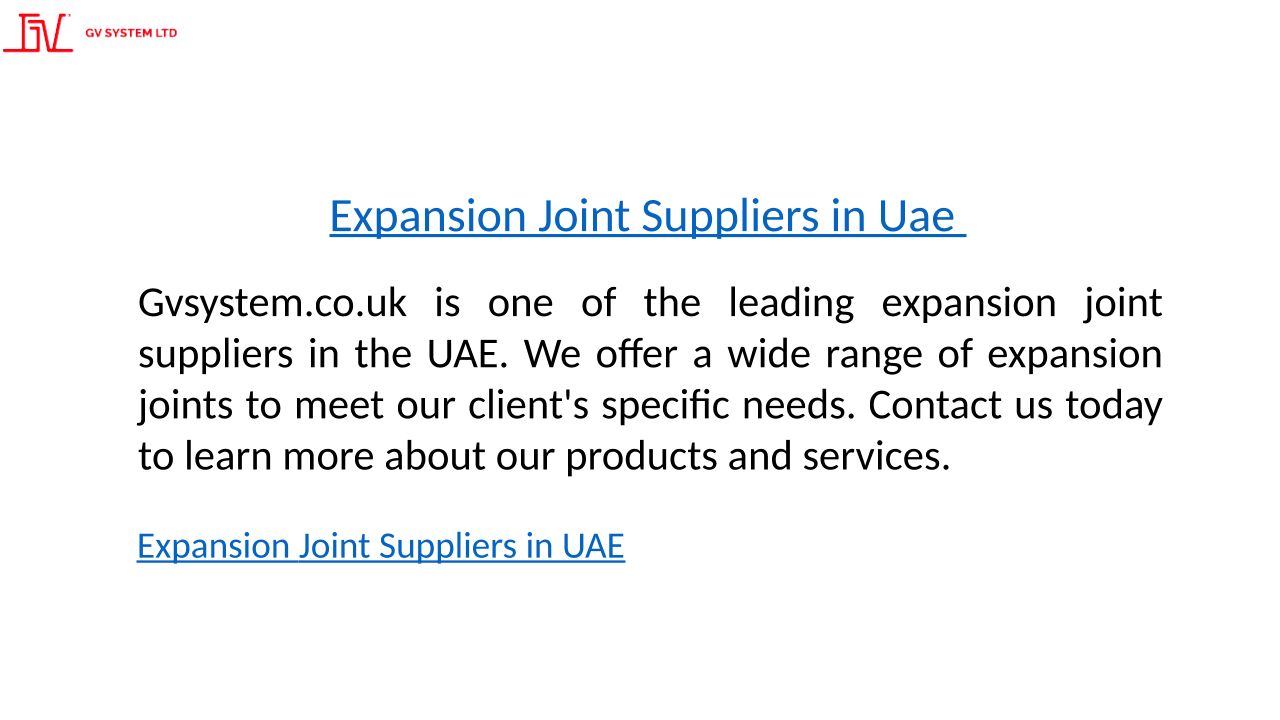 Expansion Joint Suppliers in Uae | Gvsystem.co.uk