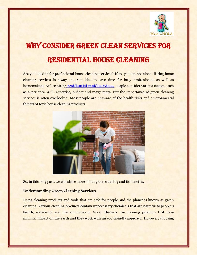 Why Consider Green Clean Services for Residential House Cleaning