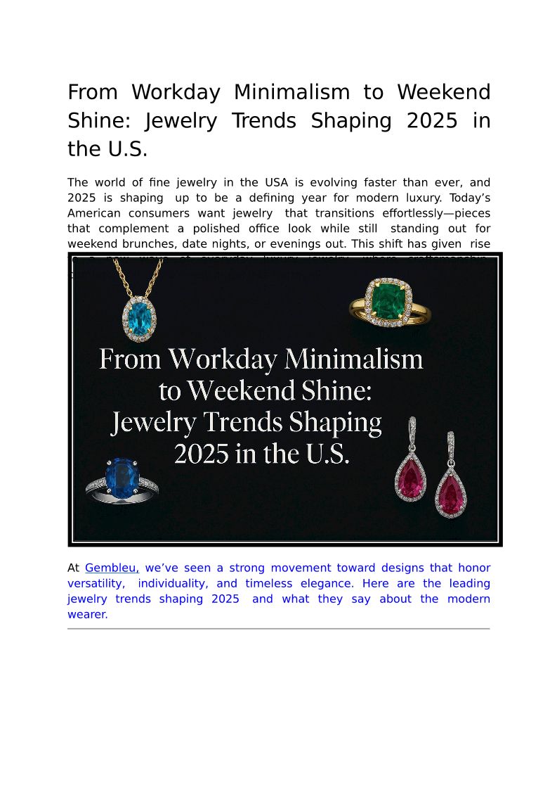 From Workday Minimalism to Weekend Shine: Jewelry Trends Shaping 2025 in the U.S.