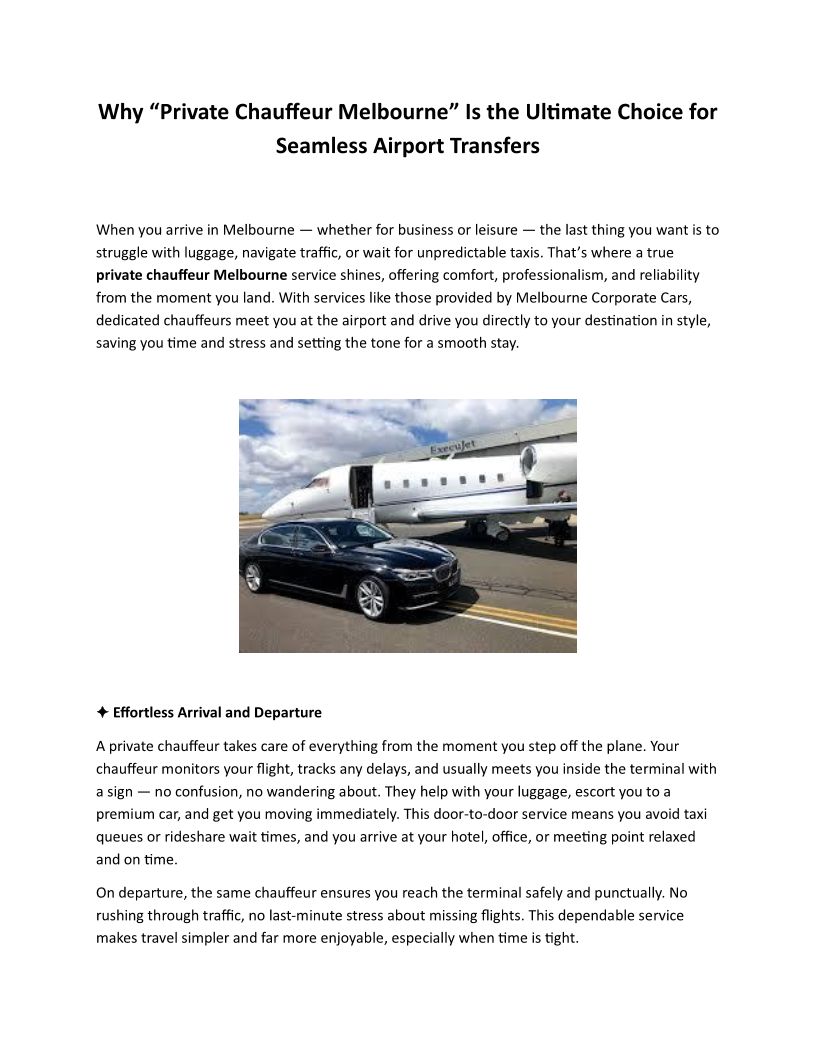 Why “Private Chauffeur Melbourne” Is the Ultimate Choice for Seamless Airport Transfers
