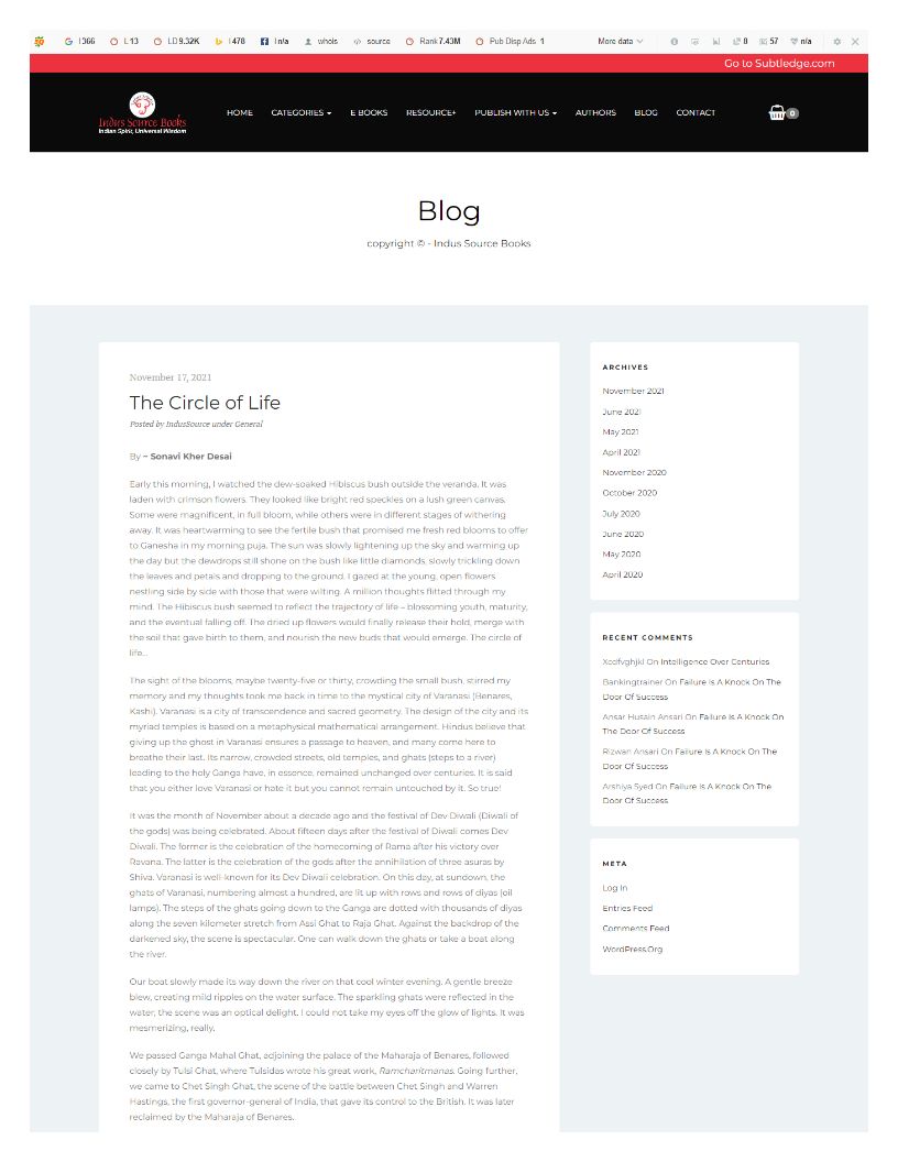 The Circle of Life Book | Spiritual Book Publishers | Indus Source