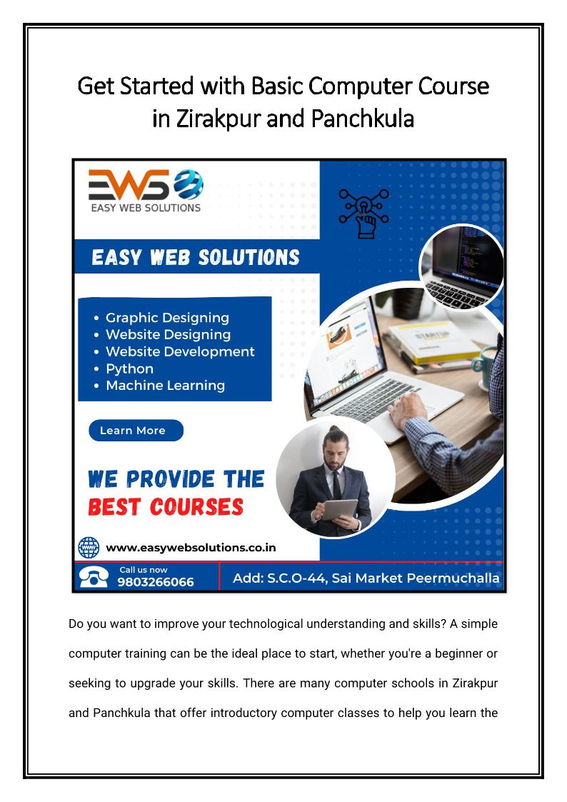 Get Started with Basic Computer Course in Zirakpur and Panchkula