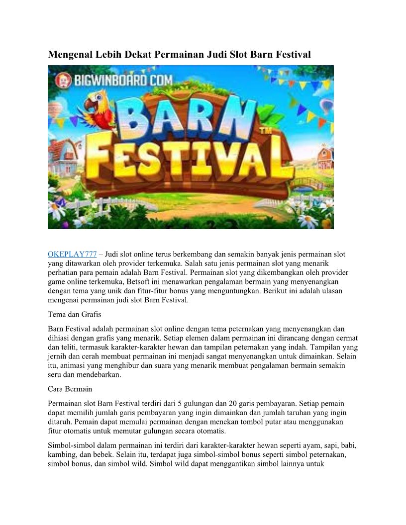 Mengenal Lebih Dekat Permainan Judi Slot Barn Festival
