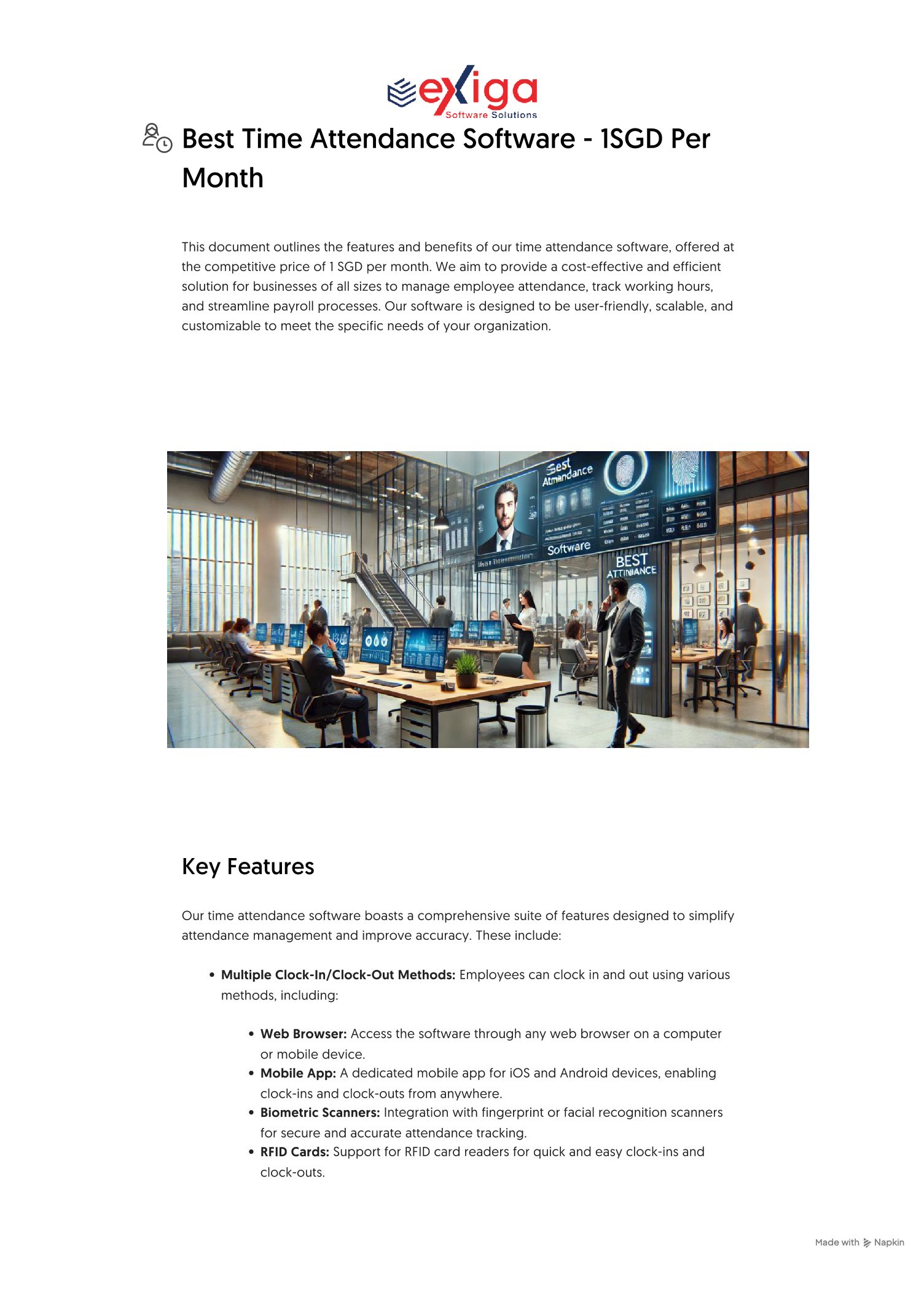 Best Time Attendance Software - 1SGD Per Month