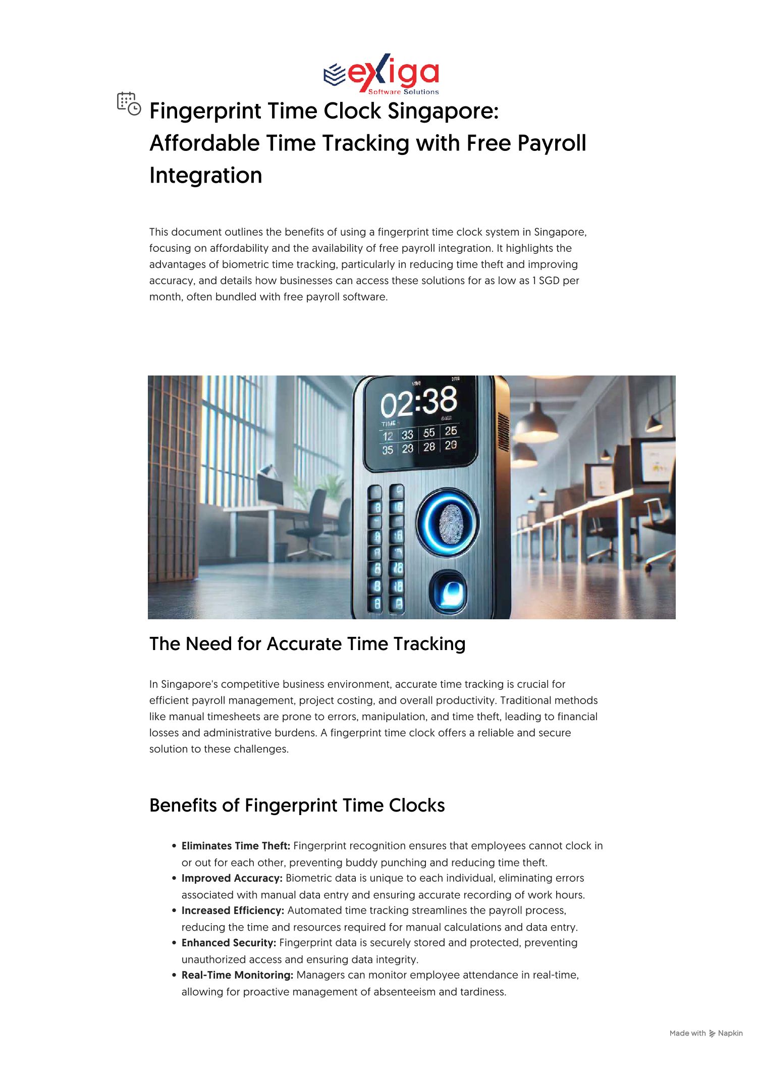 Fingerprint Time Clock Singapore_ Affordable Time Tracking with Free Payroll Integration