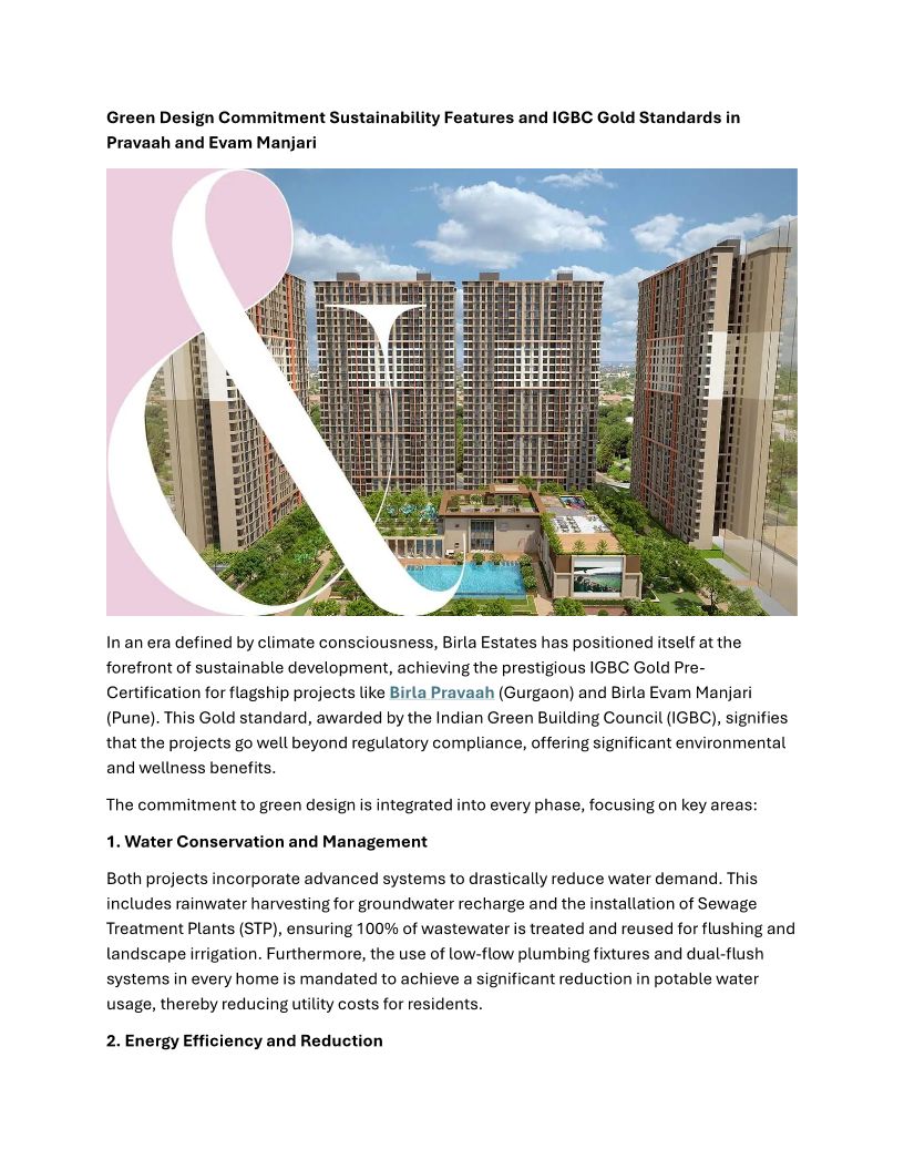 Green Design Commitment Sustainability Features and IGBC Gold Standards in Pravaah and Evam Manjari