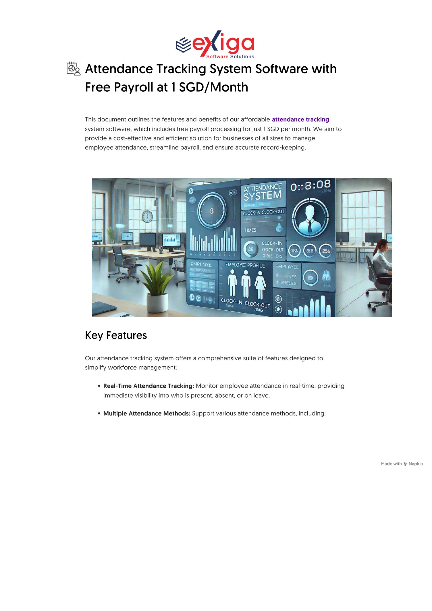 Attendance Tracking System Software with Free Payroll at 1 SGD_Month