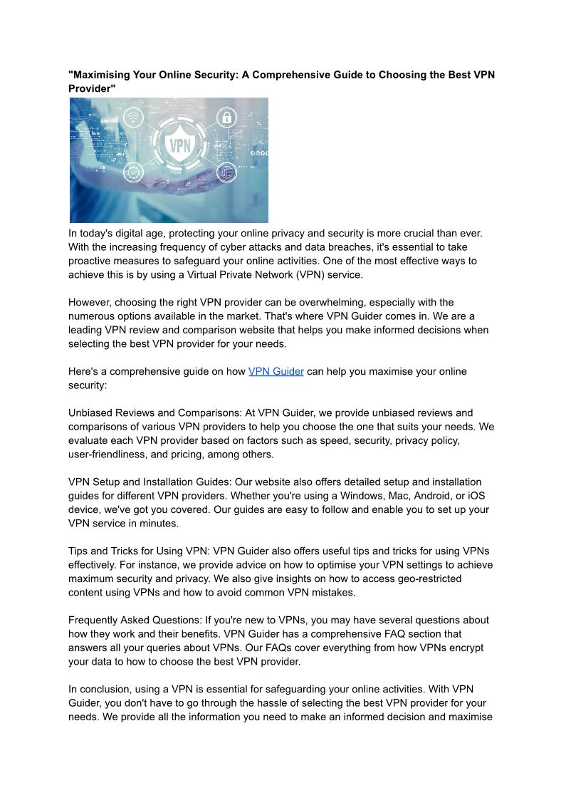 "Maximising Your Online Security: A Comprehensive Guide to Choosing the Best VPN Provider"