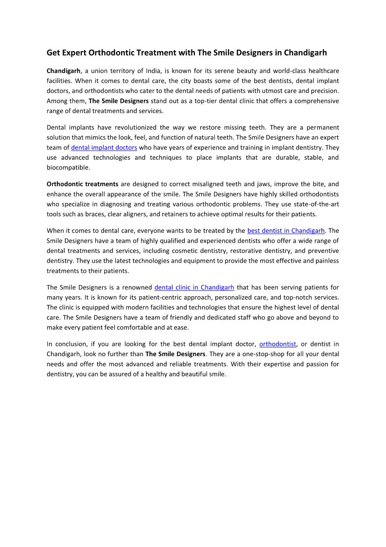Get Expert Orthodontic Treatment with The Smile Designers in Chandigarh