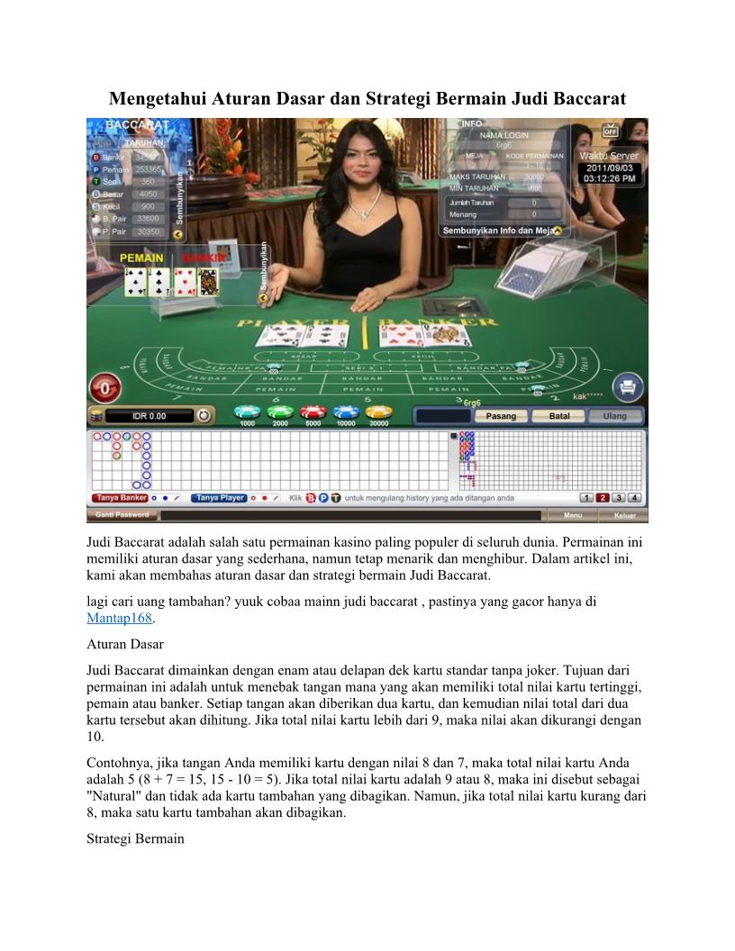 Mengetahui Aturan Dasar dan Strategi Bermain Judi Baccarat