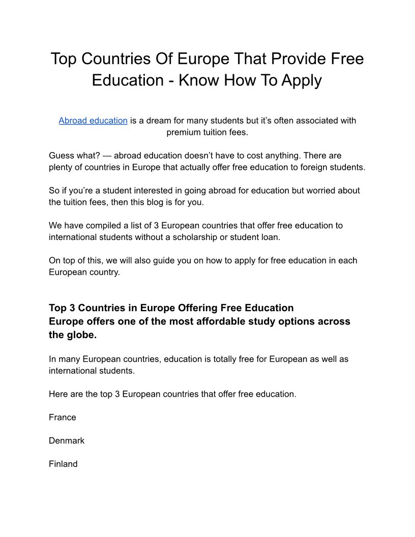 Top Countries Of Europe That Provide Free Education - Know How To Apply