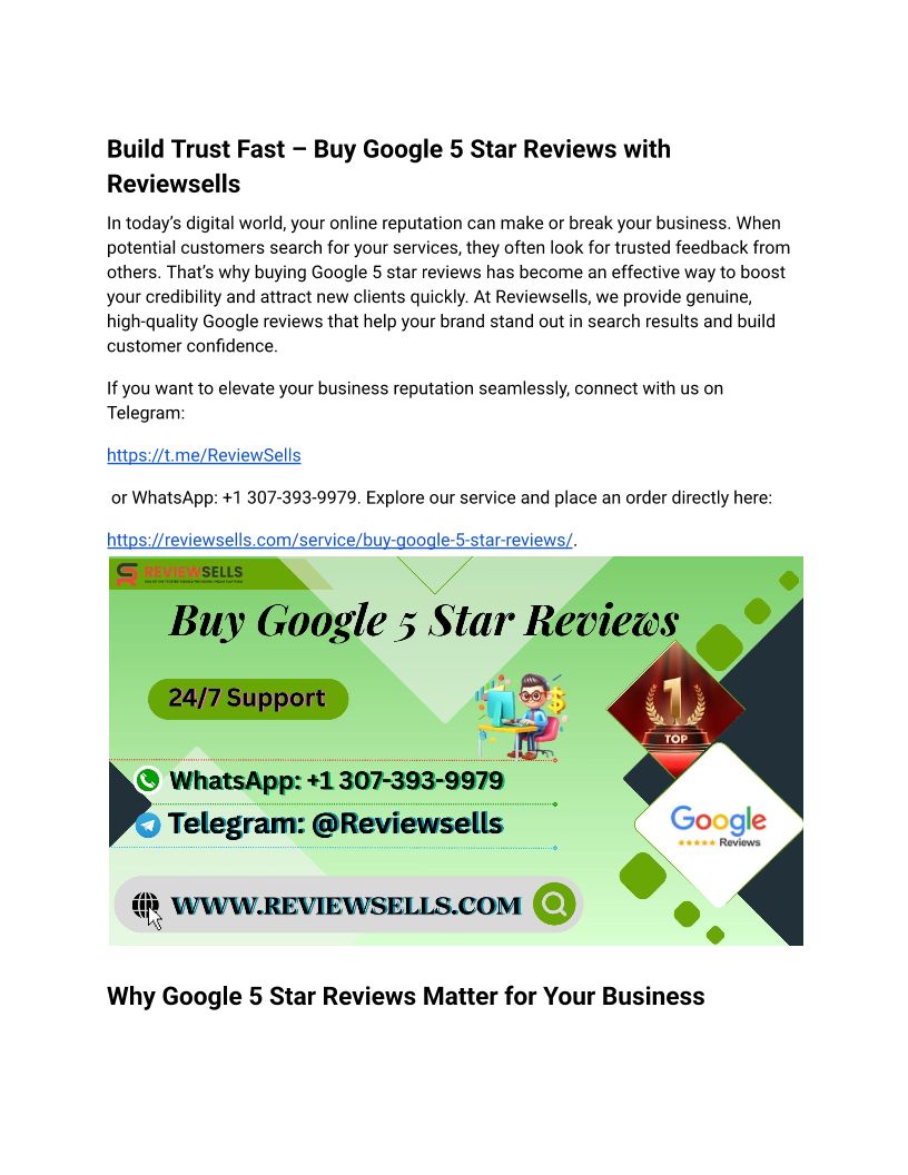 Build Trust Fast – Buy Google 5 Star Reviews with Reviewsells
