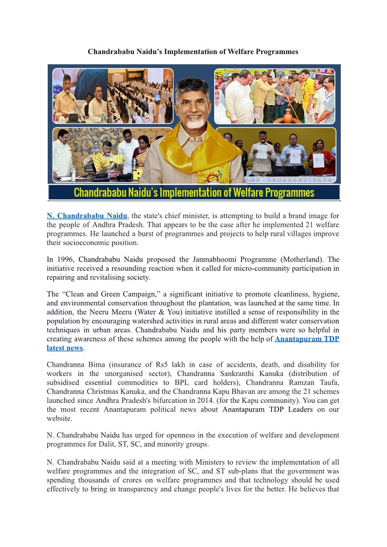 Chandrababu Naidu’s Implementation of Welfare Programmes
