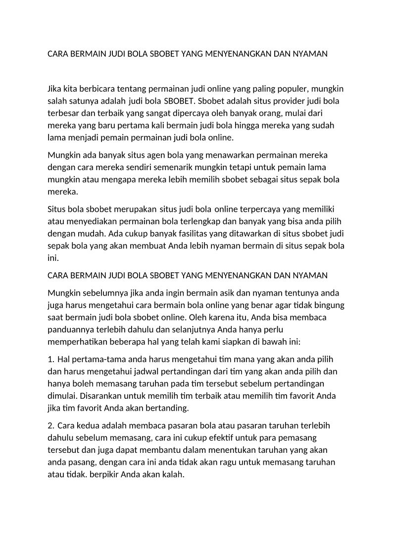 CARA BERMAIN JUDI BOLA SBOBET YANG MENYENANGKAN DAN NYAMAN