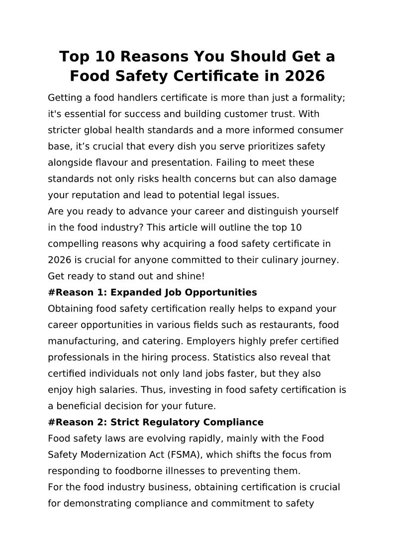 Top 10 Reasons You Should Get a Food Safety Certificate in 2026