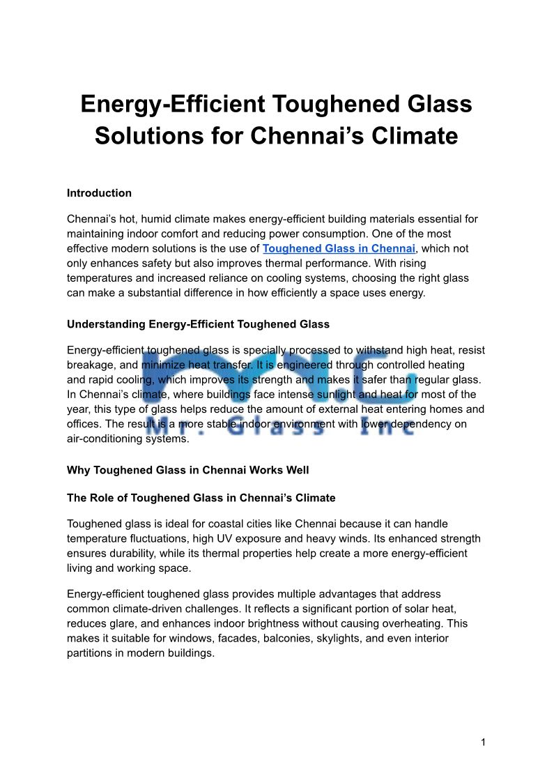 Energy-Efficient Toughened Glass Solutions for Chennai’s Climate