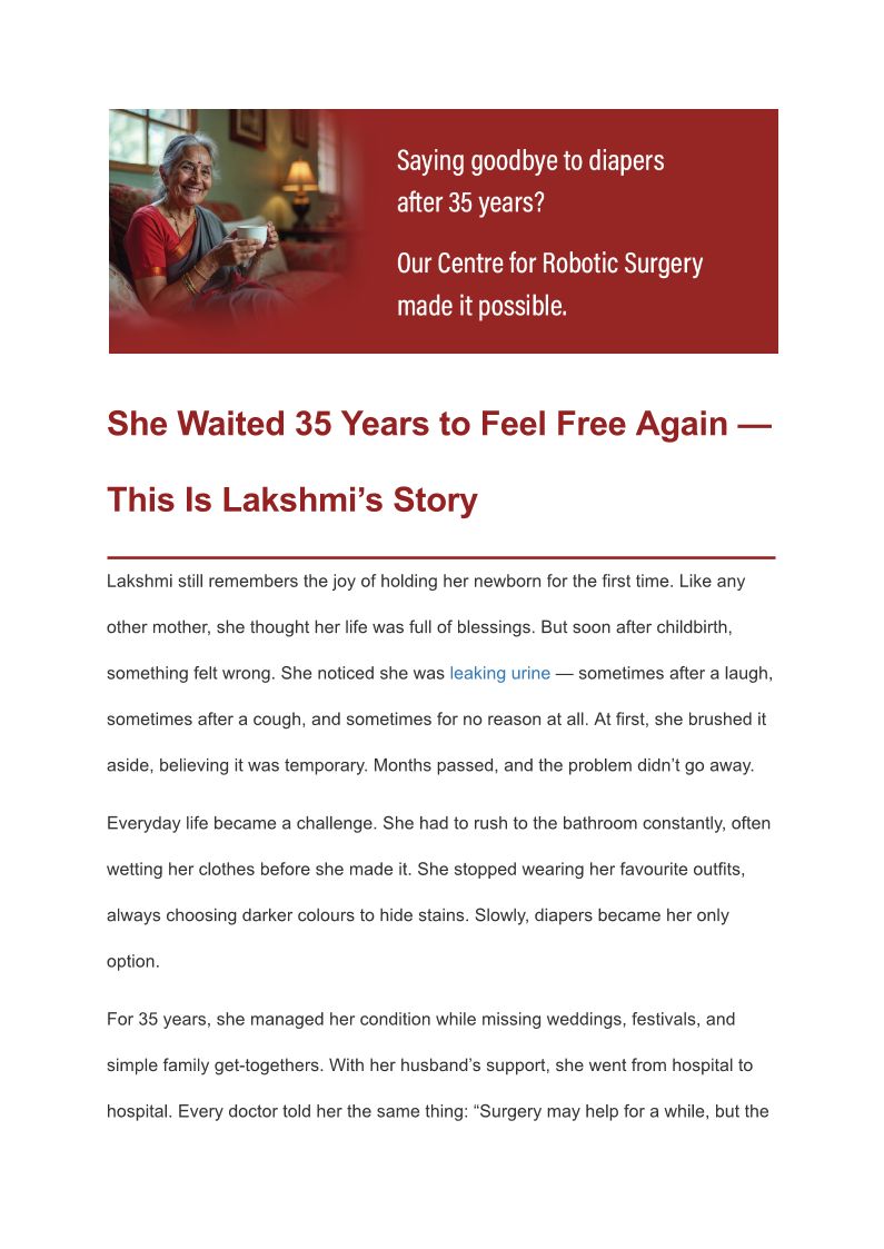 Robotic Surgery Gave Lakshmi A Normal Life After 35-Year Struggle _ AINU Hospital