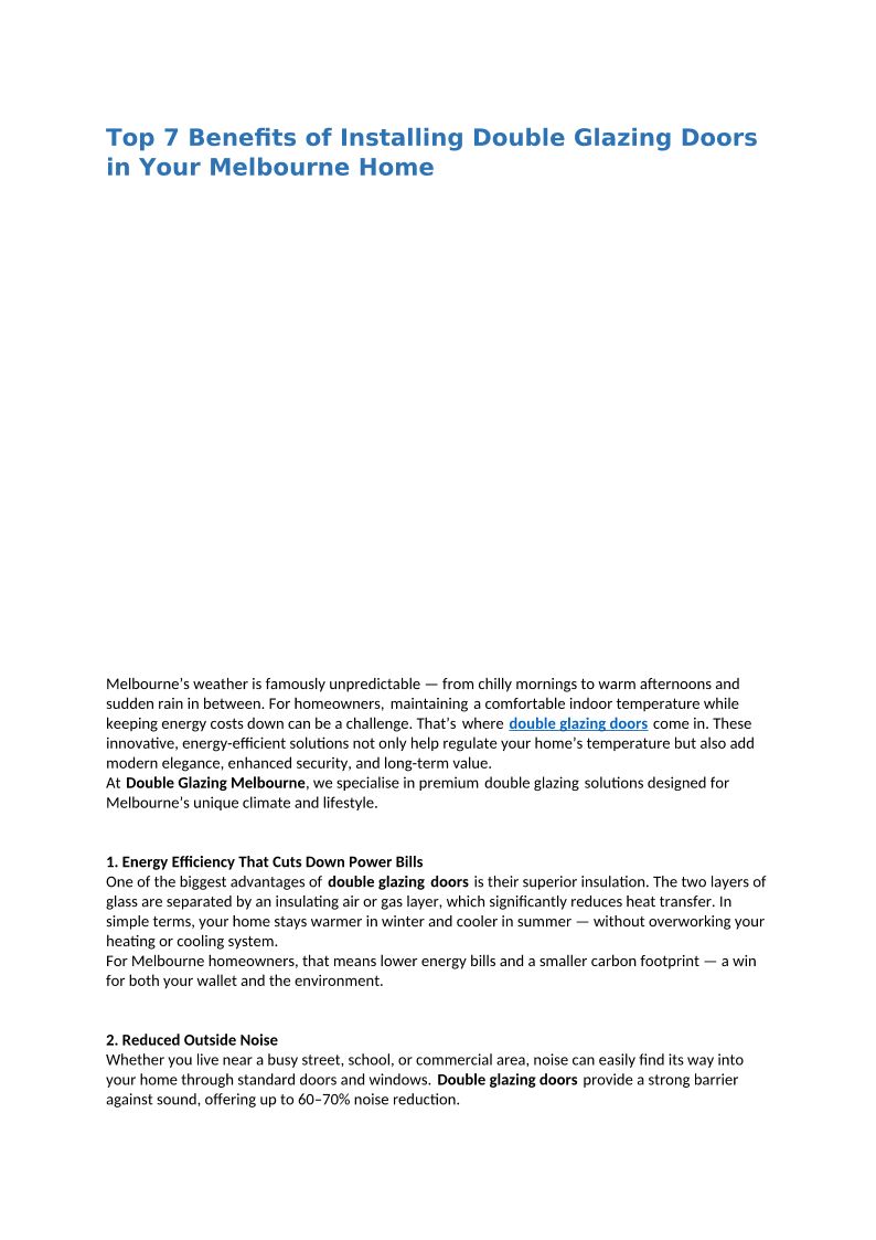 Top 7 Benefits of Installing Double Glazing Doors in Your Melbourne Home