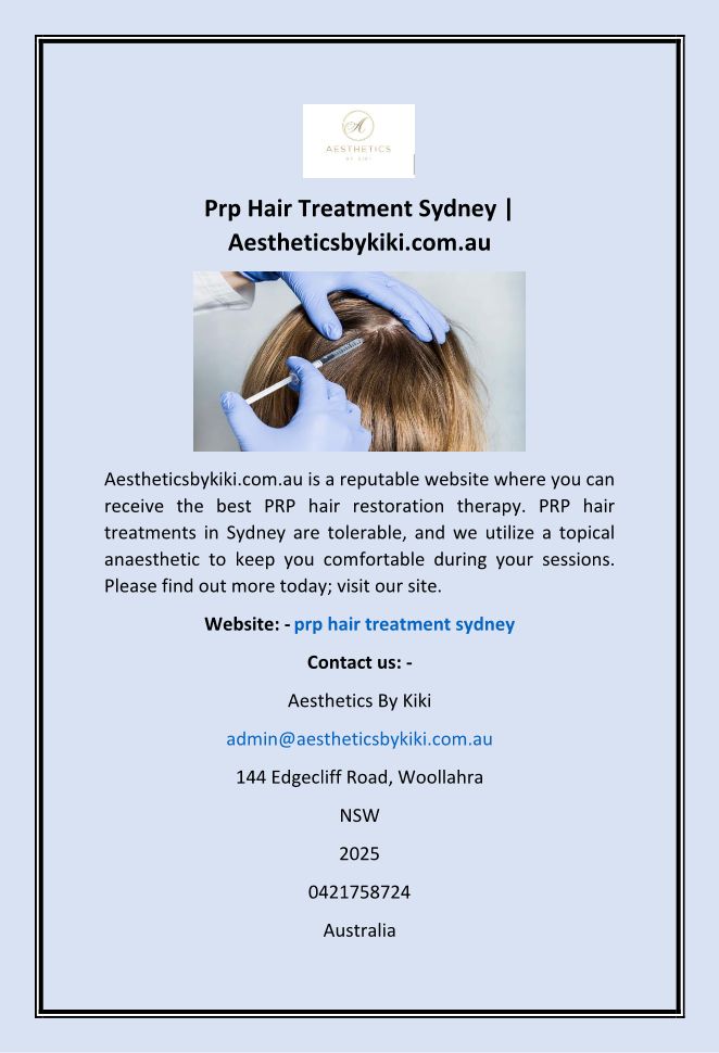 Prp Hair Treatment Sydney | Aestheticsbykiki.com.au
