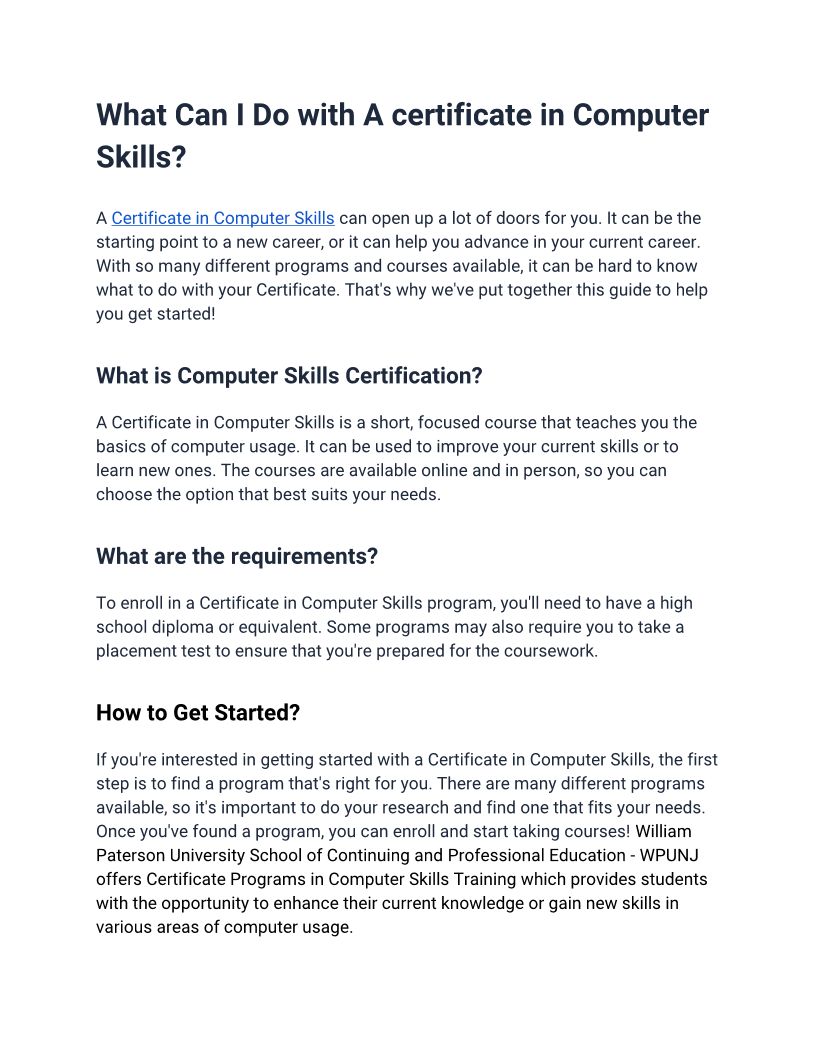 What Can I Do With A certificate in Computer Skills