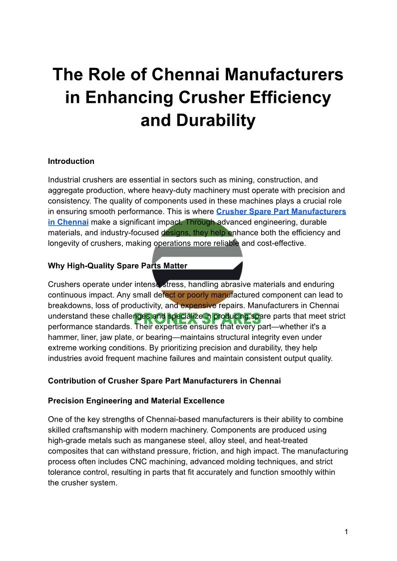 The Role of Chennai Manufacturers in Enhancing Crusher Efficiency and Durability