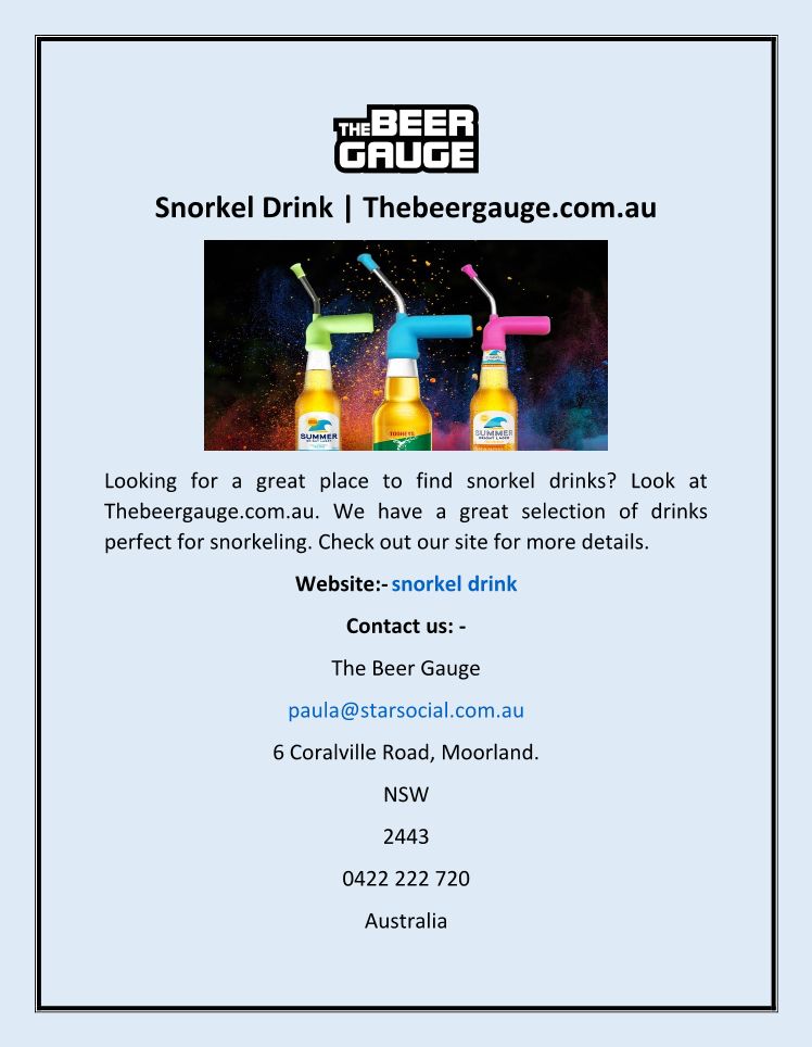 Snorkel Drink | Thebeergauge.com.au