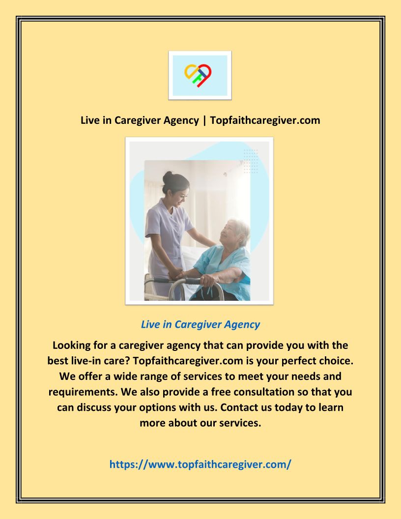 Live in Caregiver Agency | Topfaithcaregiver.com
