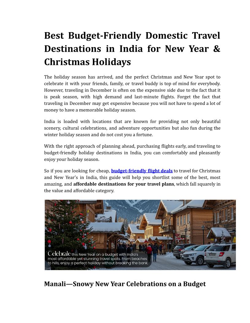 Best Budget-Friendly Domestic Travel Destinations in India for New Year & Christmas Holidays