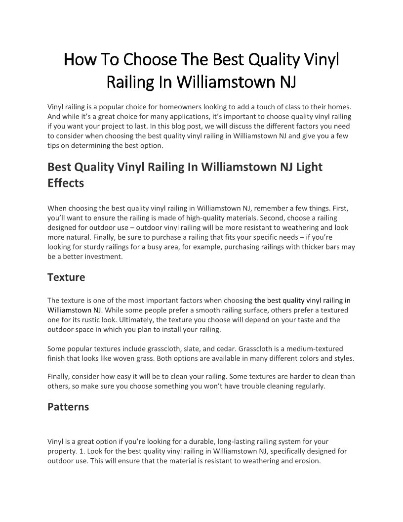How To Choose The Best Quality Vinyl Railing In Williamstown NJ