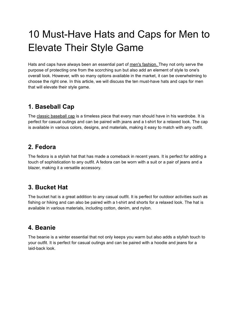 10 Must-Have Hats and Caps for Men to Elevate Their Style Game