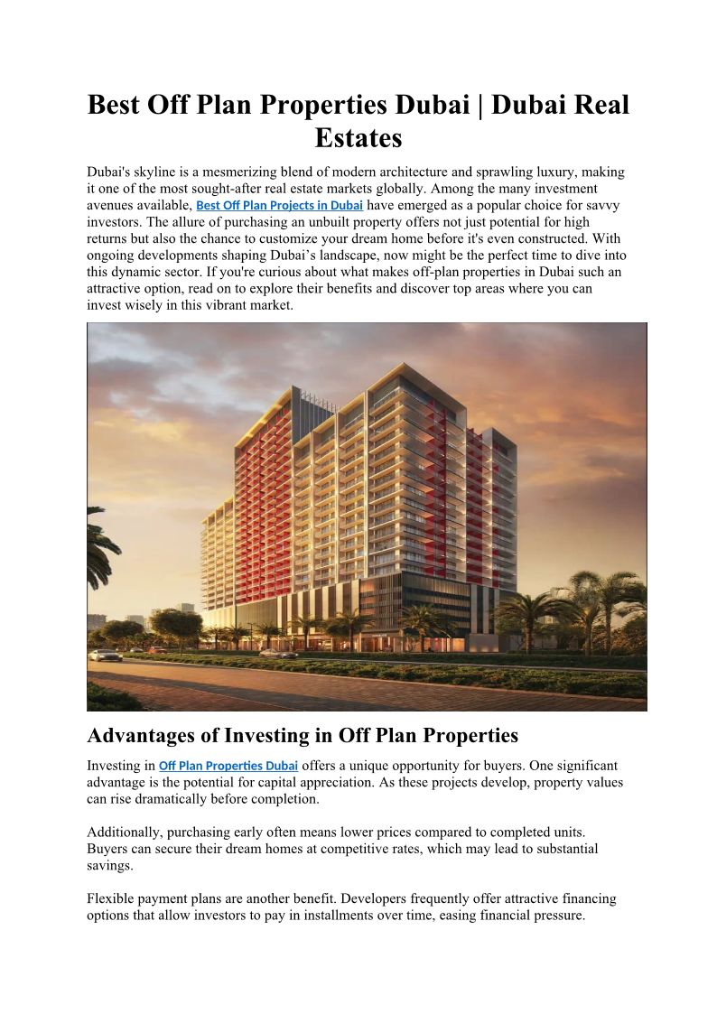 Best Off Plan Properties Dubai - Dubai Real Estates