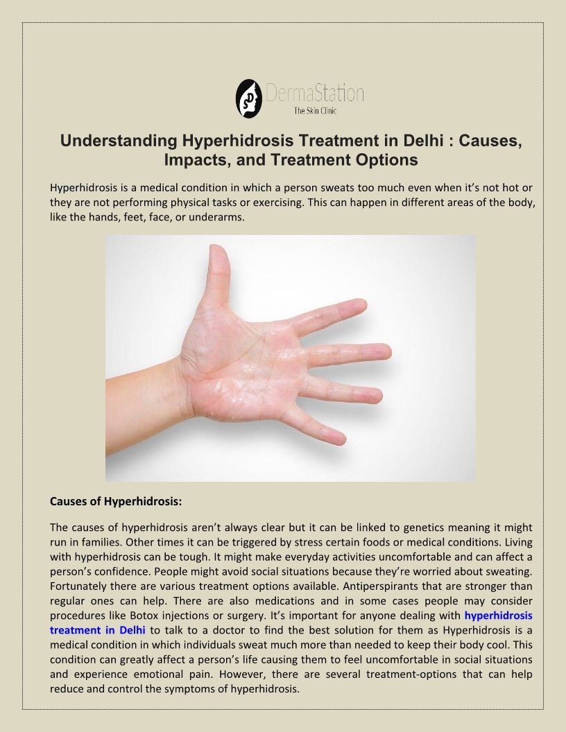 Understanding Hyperhidrosis Treatment in Delhi : Causes, Impacts, and Treatment Options