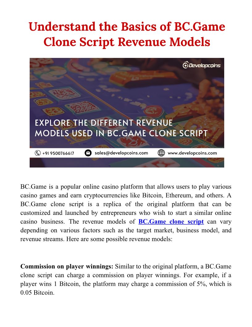 Understand the Basics of BC.Game Clone Script Revenue Models