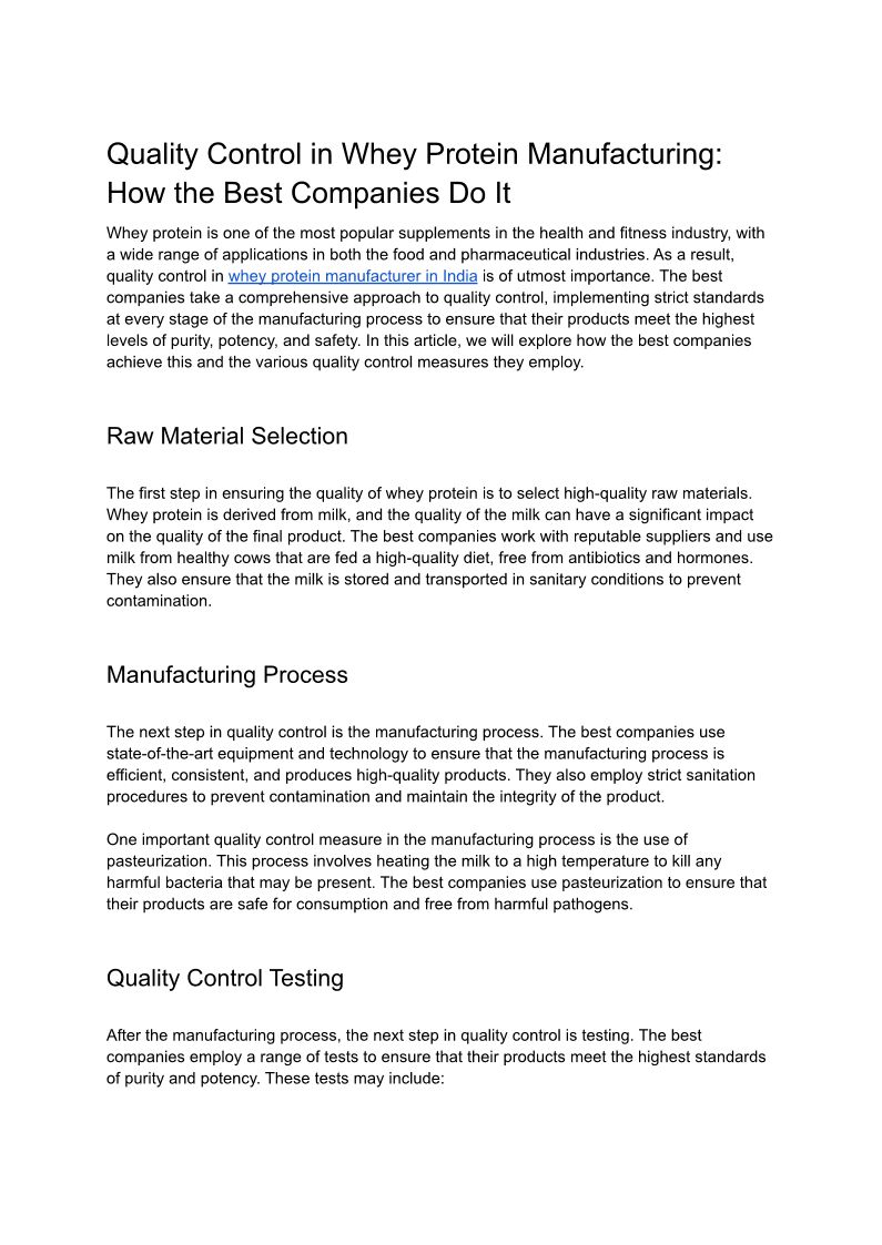 Quality Control in Whey Protein Manufacturing How the Best Companies Do It