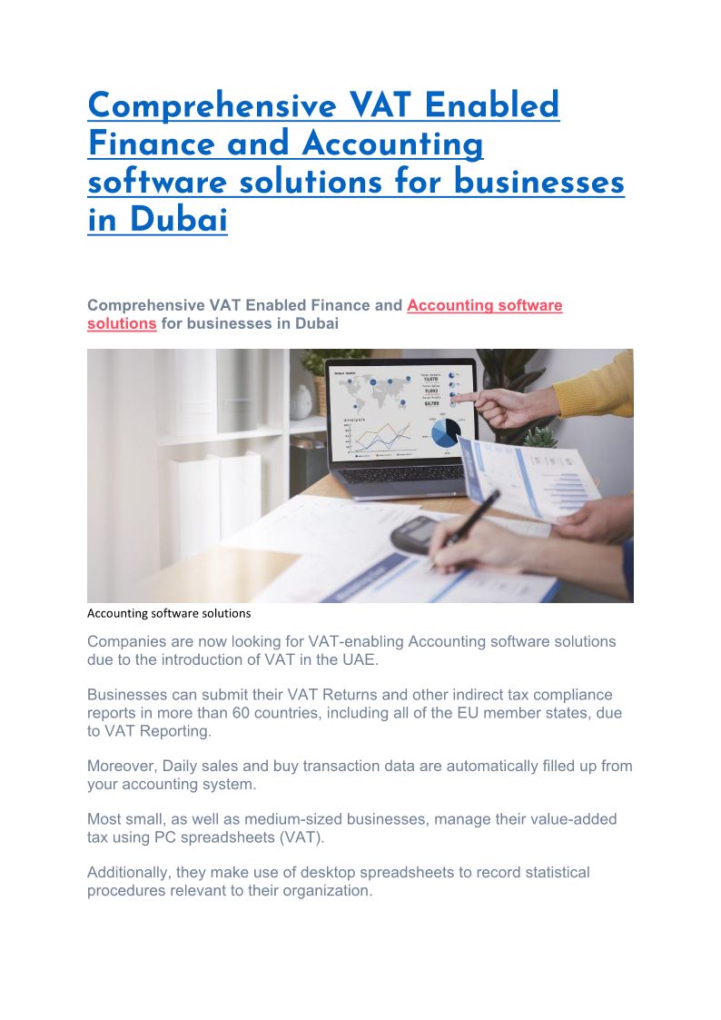 Comprehensive VAT Enabled Finance and Accounting software solutions for businesses in Dubai