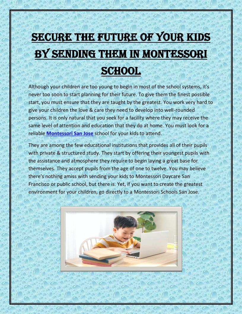 Secure the Future of Your Kids by Sending Them in Montessori School