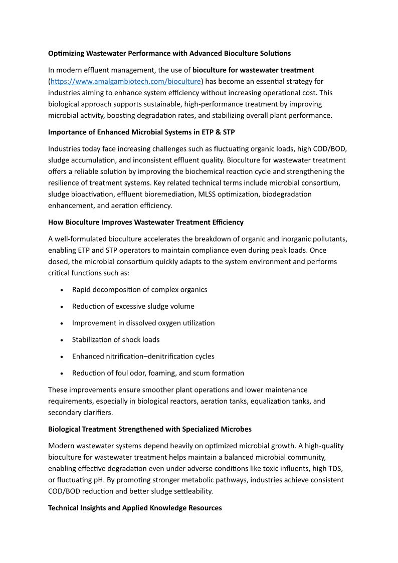 Optimizing Wastewater Performance with Advanced Bioculture Solutions