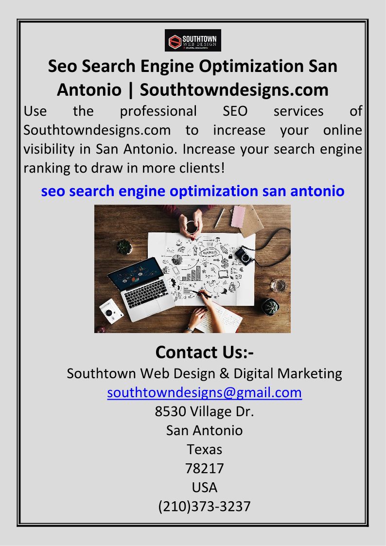 Seo Search Engine Optimization San Antonio Southtowndesigns.com
