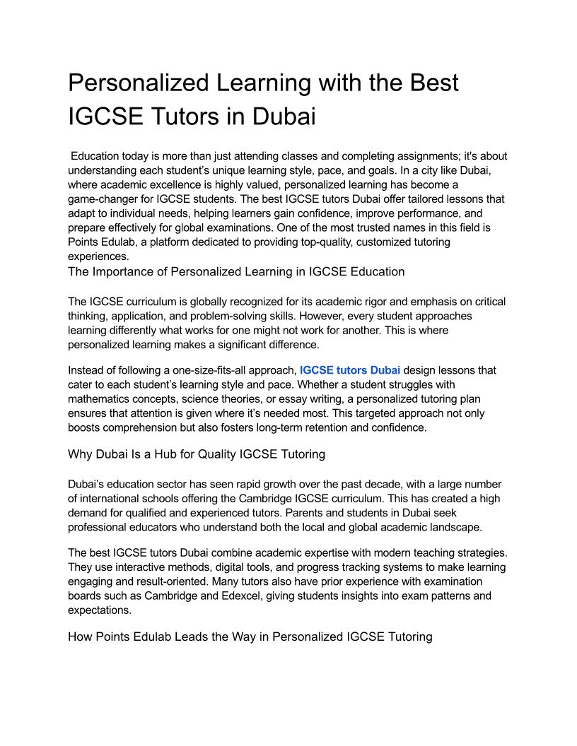 Personalized Learning with the Best IGCSE Tutors in Dubai