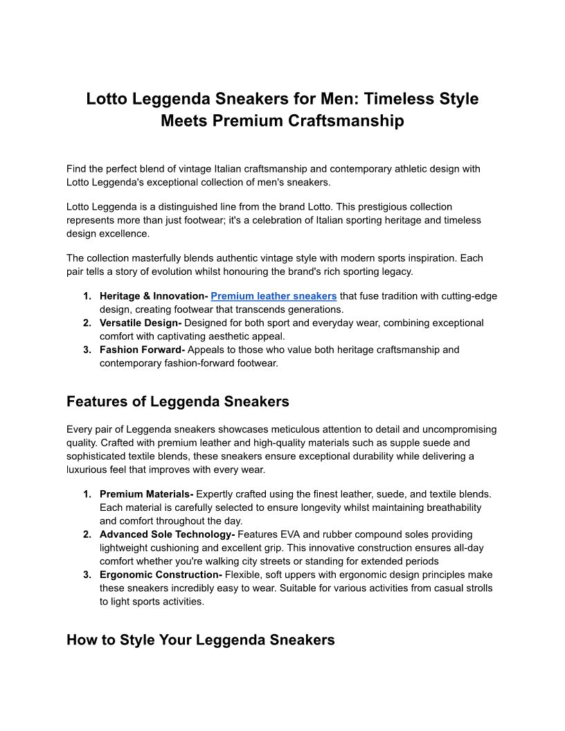Lotto Leggenda Sneakers for Men: Timeless Style Meets Premium Craftsmanship