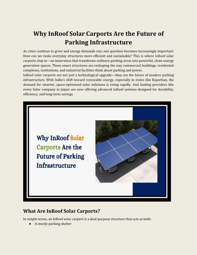 Why InRoof Solar Carports Are the Future of Parking Infrastructure