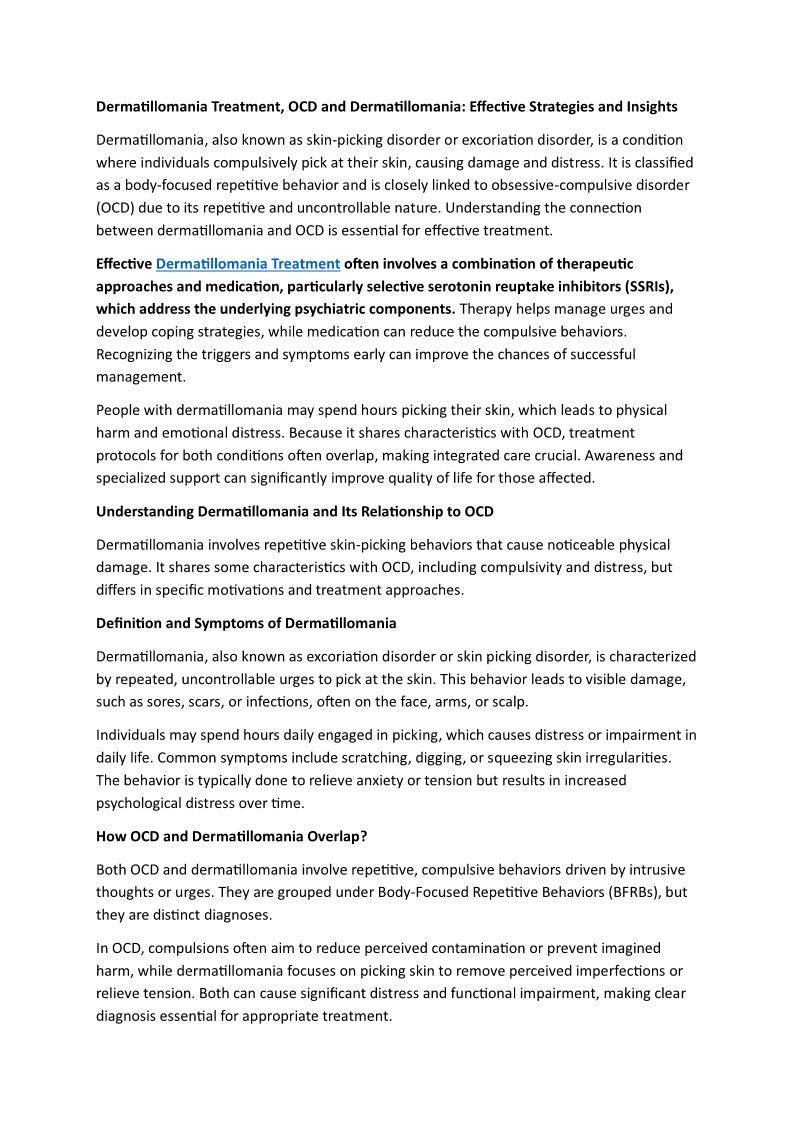 Dermatillomania Treatment, OCD and Dermatillomania Effective Strategies and Insights